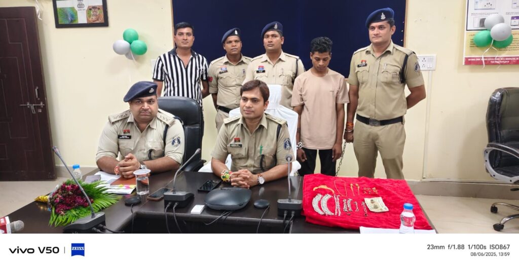 चोरी करने वाले आरोपियों को पुलिस ने एक हजार नगद, सोने एवं चांदी के जेवरात जुमला कीमती 67 हजार व घटना में प्रयुक्त हसिया के साथ किया गिरफ्तार..