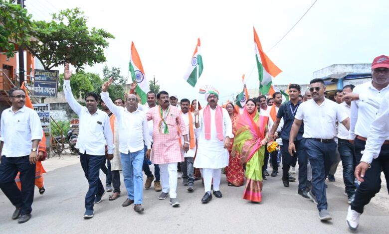 उप मुख्यमंत्री अरुण साव ने कहा कि तिरंगा हमारी एकता, अखंडता और गौरव का प्रतीक है। ‘‘हर घर तिरंगा’’ अभियान का उद्देश्य देश के प्रत्येक नागरिक को यह संदेश देना है कि राष्ट्रीय ध्वज केवल एक प्रतीक नहीं, बल्कि हमारे स्वाभिमान और बलिदान की पहचान है। उन्होंने ‘‘हर घर तिरंगा’’ अभियान को सफल बनाने आमजनों से आह्वान किया। इससे पहले लोगो ने डिंडौरी से विशाल बाईक में तिरंगा यात्रा नगर पहुँचा जो पैदल में समाहित हो गया। इस दौरान स्कूली बच्च्चों ने देश के वीर के झाँकी में स्वागत किया गया।