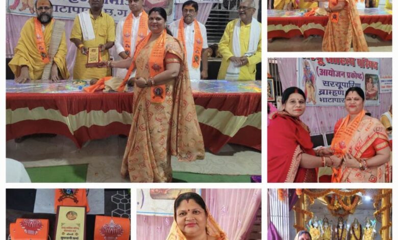 हरिपथ:भठापारा– सरयु साहित्य परिषद भाटापारा के तत्वावधान मे वृहद धार्मिक सांस्कृतिक आयोजन द्वारा वैचारिक ,नैतिक, एकता, अखंडता, सामाजिक विषयो पर विचार विमर्श का आयोजन किया गया,सेवा सौहार्द, सम्मान के अन्तर्गत विभिन्न क्षेत्र के विजेता प्रति भागियो का सम्मान किया गया,रामायण संस्कृति ज्ञान परीक्षा उत्तीर्ण करने वाले सभी प्रतिभागियो को रामायण की प्रति एवम चौकी भेंट की गई।