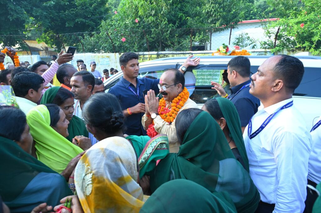 श्री साव का ग्राम अखरार में ग्रामीणों ने स्वागत किये उनकी मांग पर ग्राम में मानस मंच के 5 लाख एवँ सीसी रोड के लिये 10 लाख देने की घोषणा किये।