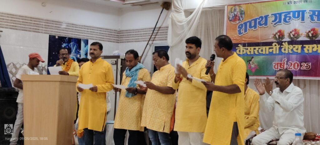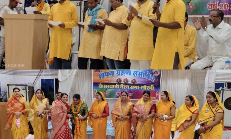 हरिपथ:लोरमी-26 सितंबर केसरवानी वैश्य समाज के नगर सभा महिला ,तरुण सभा के नवनियुक्त पदाधिकारीयो ने शपथ ग्रहण हर्षोल्लास पूर्वक सीता पैलेस में सम्पन्न हुआ।