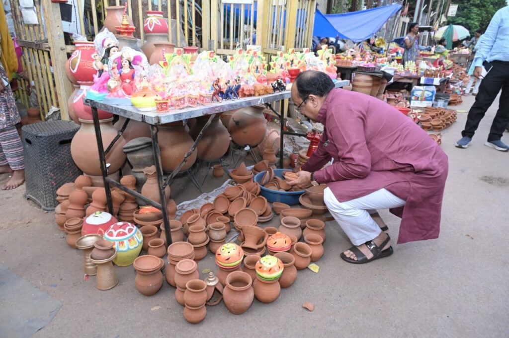 उप मुख्यमंत्री श्री साव ने कालीबाड़ी चौक के आसपास बैठे छोटे व्यापारियों से दिए और मूर्ति खरीदे, मिलने आए नन्हें बच्चों को हाथ मिलाकर दीपावली की बधाई दी।