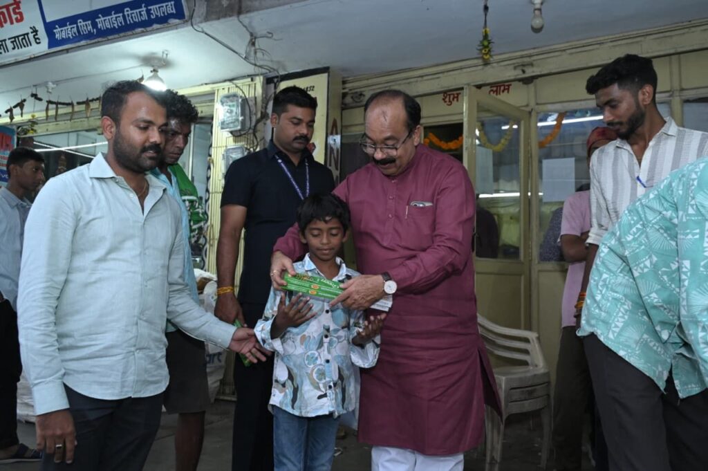 डिप्टी सीएम साव ने टिकरापारा स्थित फटाके की दुकान ने फटाके खरीदे, दुकान में आए नन्हें बच्चों से मिलकर उन्हें फुलझड़ी देते हुए दीपावली की शुभकामनाएं दी।