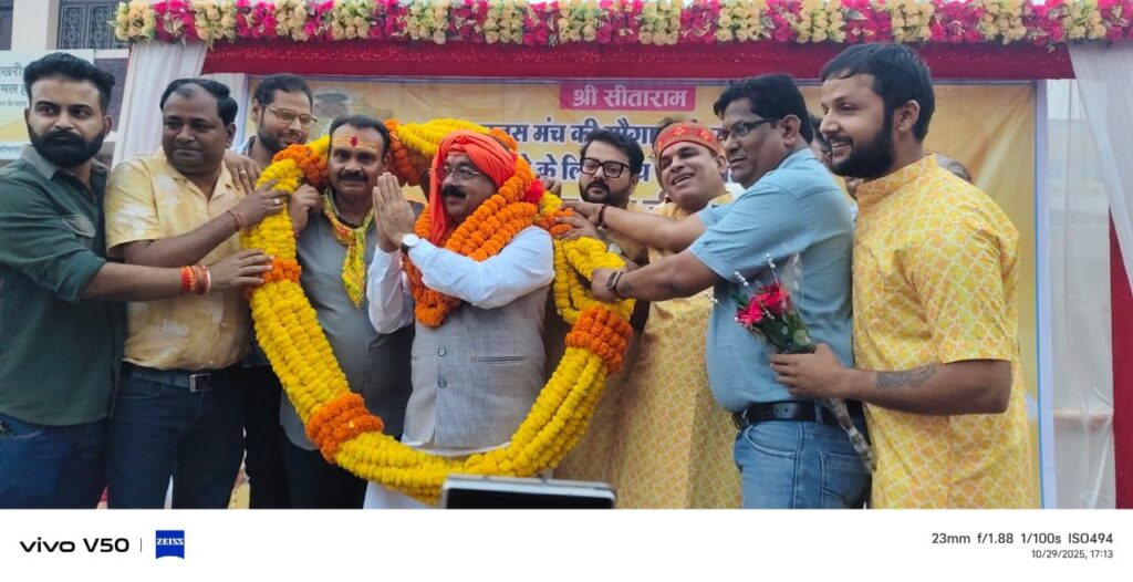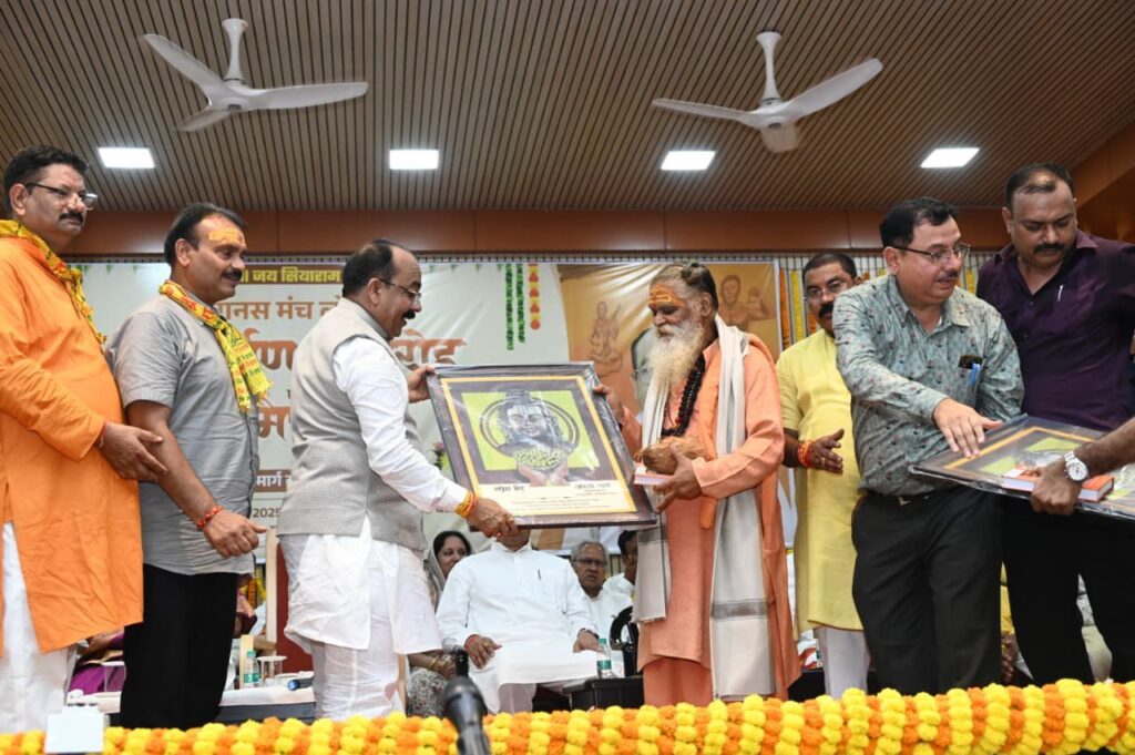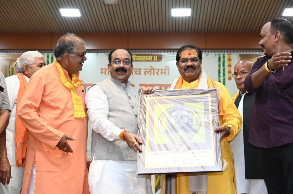 इनका हुआ सम्मान– में उप मुख्यमंत्री अरुण साव ने वरिष्ठ राजपुरोहित पं. सच्चिानंद तिवारी . (राजपुरोहित), विवेक गिरी महराज , गौरकापा, पूर्व विधायक ठाकुर भूपेन्द्र सिंह , कोमल गिरी , राधेश्याम अग्रवाल, रामलाल जायसवाल , रतनमणी केशरवानी, पवन अग्रवाल, रामावतार ध्रुव, बंशी साहू जी, विद्या दुबे , परमानंद तिवारी , उदय साहू , लाखासार, सत्यनारायण तिवारी, जगदीश सोनी अध्यक्ष श्रीराम कथा समिति, महेत्तर कश्यप , शिवकुमार पाण्डेय दर्शन महराज अशोक उपाध्याय , मणिककांत पाठक , राजाराम , लालपुर कला विश्राम तिवारी, लोरमी, लक्ष्मी शर्मा , अदिति तिवारी, शिवकुमार पाठक , विनोद तिवारी , रमाकांत मिश्र , मूलचंद तिवारी, अशोक शर्मा , फणेश्वर पाटले, सुदर्शन साई सहित अन्य का नगर में बनी बेर से बनी प्रभु श्री राम जी की प्रतिमा भेंट की। स्वागत भाषण गुरमीत सलूजा, आर्शीवचन महंत विवेक गिरी महराज ने दिए। पूर्व विधायक ठा भूपेंद्र सिंह ने सम्बोधित किया। नगर पालिका के मुख्य नगर पालिका अधिकारी चंदन शर्मा ने कार्यक्रम में विस्तृत प्रतिवेदन प्रस्तुत करते हुए नगर के विकास कार्यों की जानकारी दी। श्री राम कथा आयोजन समिति के अध्यक्ष जगदीश सोनी ने बताया कि 44 वर्ष पहले प्रथम बार आयोजन स्व शंकर लाल अग्रवाल के द्वारा कराया गया था। राम कथा समिति ने भव्य निर्माण के लिये अरुण साव के प्रति धन्यवाद ज्ञापित किये। संचालन विश्वास दुबे , एवं रिक्की सलूजा ने किया।