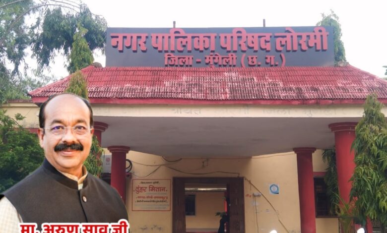 उपमुख्यमंत्री अरुण साव की लोरमी नगरपालिका को बड़ी सौगात: खेल परिसर,स्ट्रीट लाईट,फुटपाथ, तालाब सौदींकरण के लिये 20 करोड़ 98 लाख 82 हजार की स्वीकृति…