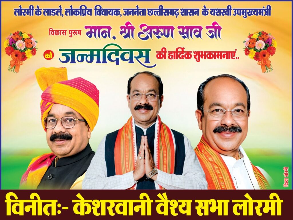 हरिपथ:लोरमी– (विशेष खबर)25 नवम्बर क्षेत्र के विधायक एवँ छग शासन के उपमुख्यमंत्री अरुण साव वकालत से सियासत तक शानदार सफर है। सियासी चुनौती को सफलता दिलाकर राज्य में फिर से भाजपा की सरकार स्थापित करने में बड़ी भूमिका निभाई। जीवटता से सरलतापूर्वक क्षेत्र में लोरमी क्षेत्र नया अध्याय लिख रहे है। दो वर्षों में हजार करोड़ से अधिक विभिन्न योजनाओं से विकास कार्यों को क्षेत्र को नई दिशा प्रदान कर रहें है। इस लिए उनको अब विकास पुरूष नाम की सज्ञा दे रहे है।