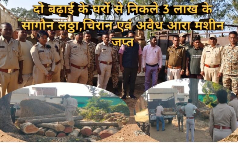 दो बढ़हाईयो के घरों से निकले तीन लाख के अवैध ईमारती लकड़ी: अवैध आरा मशीन सहित सागौन के लठ्ठा,चिरान जप्त..