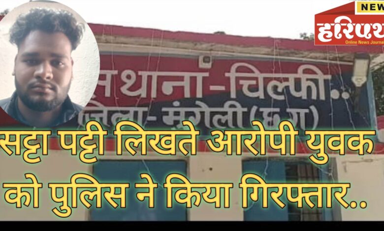 हरिपथ:लोरमी-12 दिसम्बर थाना चिल्फी क्षेत्रान्तर्गत ग्राम बोड़तरा मे आरोपी संदीप उर्फ पंकज यादव कोे आम जनता को रूपये पैसे का लालच देकर अंकों पर कागज एवं मोबाइल मे सट्टा पट्टी लिखते आरोपी के विरूद्ध थाना चिल्फी मे अपराध क्र. 187/25 धारा 6 छ.ग. जुआ प्रतिषेध अधिनियम 2022 के तहत आरोपी संदीप उर्फ पंकज यादव के कब्जे से नगद 1960 रूपये, कागज मे सट्टा पट्टी व 01 नग मोबाइल कीमती 4000 रूपये, 01 डाट पेन को जप्त कर गिरफ्तार के जेल भेजा गया।