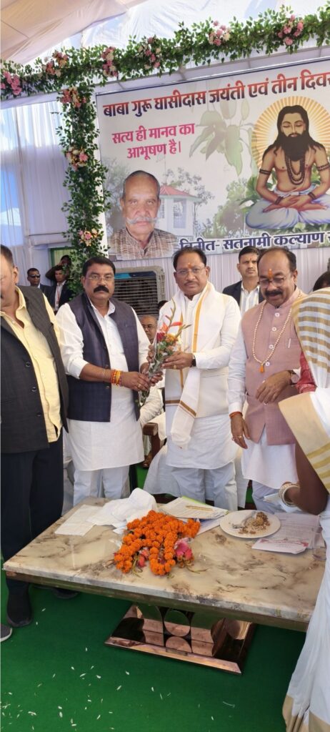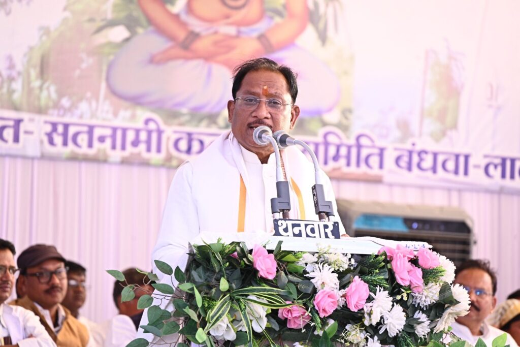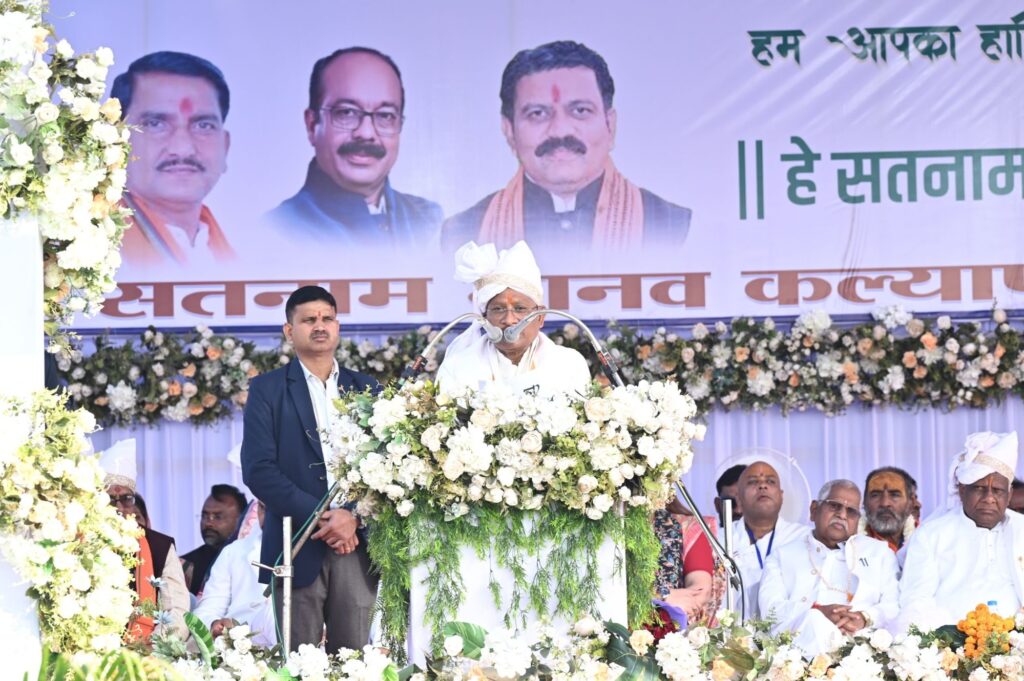 कार्यक्रम को संबोधित करते हुए मुख्यमंत्री श्री साय ने कहा कि बाबा गुरु घासीदास द्वारा बताए गए सत्य, समानता और मानवता के मार्ग पर चलकर ही छत्तीसगढ़ को विकसित राज्य बनाया जा सकता है। हमारी सरकार अपने महापुरुषों के सपनों के अनुरूप समतामूलक और समृद्ध राज्य के निर्माण की दिशा में लगातार कार्य कर रही है। उन्होंने बताया कि सरकार के दो वर्ष पूर्ण होने के दौरान प्रधानमंत्री श्री नरेंद्र मोदी की अधिकांश गारंटियों को पूरा किया गया है। प्रदेश में 18 लाख आवासों की स्वीकृति दी गई है। समर्थन मूल्य पर धान खरीदी को प्राथमिकता दी जा रही है तथा धान खरीदी पूर्ण होने के पश्चात किसानों को अंतर की राशि शीघ्र अंतरित की जाएगी। सरकार प्रत्येक पात्र किसान से धान खरीदी के लिए पूर्णतः संकल्पित है।