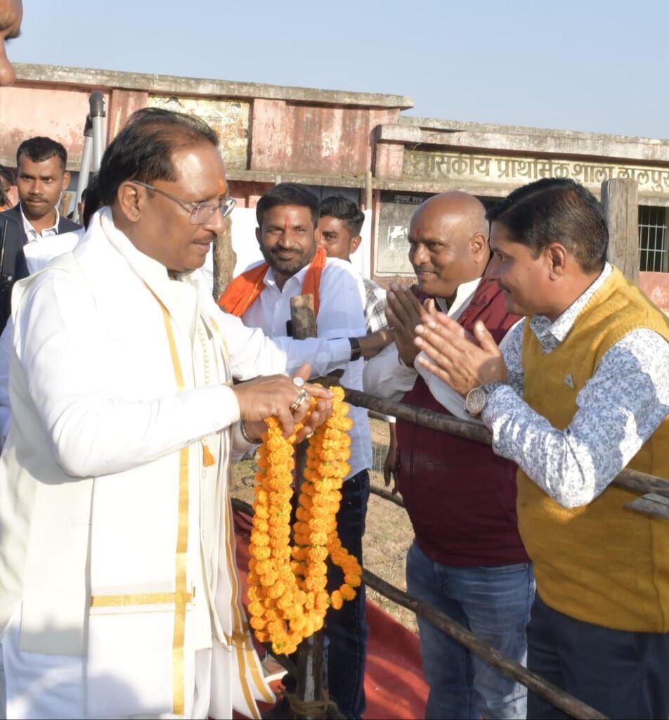 मुख्यमंत्री के आगमन पर उपमुख्यमंत्री अरुण साव, खाद्य मंत्री दयालदास बघेल, कैबिनेट मंत्री गुरु खुशवंत साहेब, मुंगेली विधायक पुन्नूलाल मोहले, बिल्हा विधायक धरमलाल कौशिक, बेलतरा विधायक सुशांत शुक्ला, अहिवारा विधायक डोमन लाल कोरसेवाड़ा, पंडरिया विधायक भावना बोहरा, जिला पंचायत अध्यक्ष श्रीकांत पांडेय एवं जिलाध्यक्ष दीनानाथ केशरवानी ने स्वागत किया। कार्यक्रम में समाज के प्रतिनिधियों ने मुख्यमंत्री एवं अतिथियों का पगड़ी एवं गजमाला पहनाकर सम्मान किया।