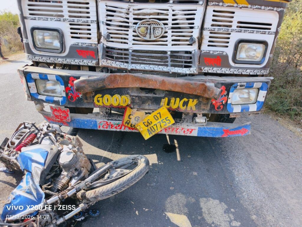 पुलिस से मिली जानकारी के अनुसार जूनापारा चौकी क्षेत्र अंतर्गत ग्राम चोरहागांव के समीप मुख्य मार्ग में दोपहर डेढ़ से दो बजे के बीच चावल से लदी ट्रक में एक बाइक सवार पिता पुत्र भीषण दुर्घटना का शिकार हो गए। हादसे में ग्राम टेकनपरा निवासी हरिराम 55 वर्ष पिता तिजाऊ राम ध्रुव एवं पुत्र प्रमोद ध्रुव पिता हरिराम गंभीर रूप से घायल हो गए।