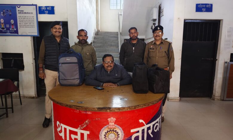 15 जनवरी को सूचना मिली कि हेमुनगर ओव्हर ब्रीज के पास मैदान में 02 व्यक्ति पीट्ठू बैग वजनी सामान रखा हुआ संदिग्ध खडे हैं, सूचना पर सायबर युनिट एवं थाना तोरवा पुलिस के द्वारा त्वरित मौके पर तस्दीक कार्यवाही हेतु पहुंचा पुलिस वाहन देख दोनो संदेही भागने लगे जिन्हे घेराबंदी कर पकडा गया। पूछताछ एवं बैग चेक करने पर 02 अलग अलग बैग में खाकी टेप लिपटा हुआ कुल 11.080 किग्रा मादक पदार्थ गांजा जिसकी कीमत लगभग 132000 रू मिला। नाम पता पूछने पर पेड्रा , एवं मध्यप्रदेश का रहने वाले बताये। मादक पदार्थ तस्करी के संबंध में पूछताछ पर उडीसा से मध्यप्रदेश ले जाना बताये हैं। 02 नग मोबाईल जप्त किया गया है। आरोपी के विरूद्ध एनडीपीएस एक्ट के प्रावधानो के थाना – तोरवा जिला बिलासपुर (छ.ग.)अप.क्र. – 19/2026 धारा – 20बी,iiB एनडीपीएस एक्ट के तहत गिरफतार कर न्यायालय पेश किया गया है।
