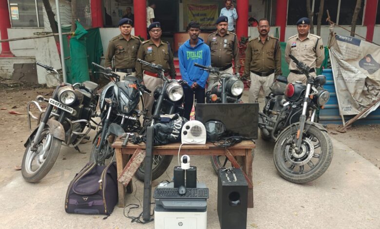 पुलिस ने पाँच महंगे बाईक चोरी करने आरोपी एवं दो अन्य अपचारी को मशरूका के साथ किया गिरफ्तार….