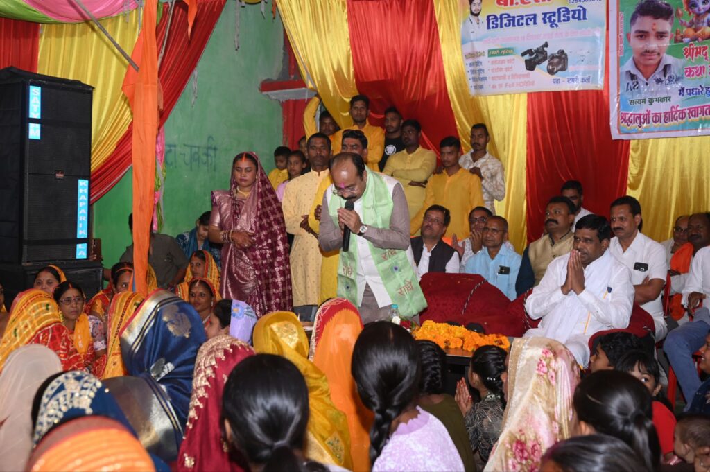 श्री साव ने महिलाओं को सम्बोधित करते हुए कहा गांव की पांच महिला स्वयं सहायता समूह, जय माँ महामाया, माँ अन्नपूर्णा, जय शनिदेव, माँ शीतला एवं विश्वकर्मा महिला स्वयं सहायता समूह की बहनों ने एकजुट होकर श्रीमद्भागवत महापुराण ज्ञान यज्ञ सप्ताह का आयोजन किया है। इससे ग्राम में भक्ति, सत्संग, और ज्ञान की पावन धारा प्रवाहित हो रही है, जिससे संपूर्ण वातावरण आध्यात्मिक ऊर्जा से आलोकित हो उठा है।