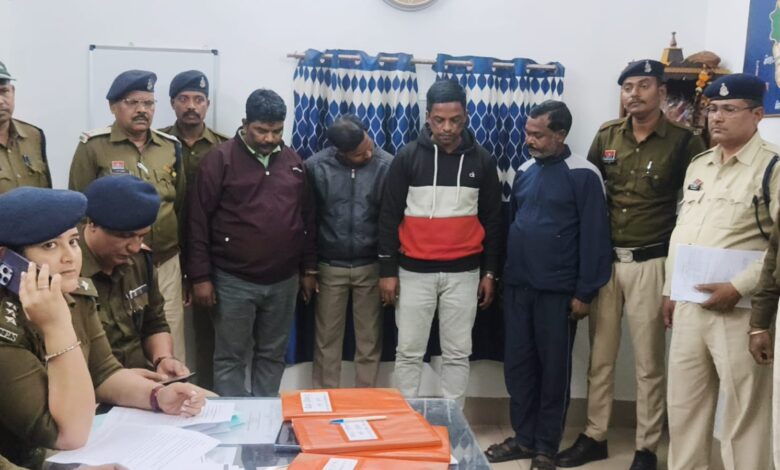 गिरफ्तार आरोपी :-विद्यादास महंत पिता स्व . ग्वाल दास महंत उम्र 43 वर्ष पता सीतापुर खड़गांव थाना सीतापुर, जिला सरगुजा हाल मुकाम तहसील कार्यालय परिसर लखनपुर जिला सरगुजा छ.ग. ,रामसुन्दर पिता रामसाय उम्र 32 साल पता बनखेता खरवर थाना चरचा जिला कोरिया छ.ग., राजीव कुमार सिंह पिता सुरेन्द्र सिंह उम्र 37 वर्ष पता हर्रापारा वार्ड नंबर 01 बैकुंठपुर थाना बैकुंठपुर जिला कोरिया छ.ग., गुलशन कुजुर पिता स्व सुशील कुजुर उम्र 47 वर्ष पता चरचा कालरी थाना चरचा जिला कोरिया छ.ग. सामिल है।