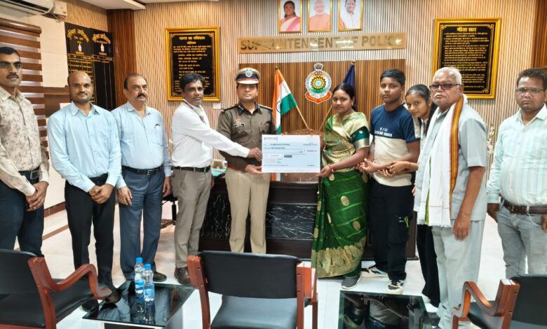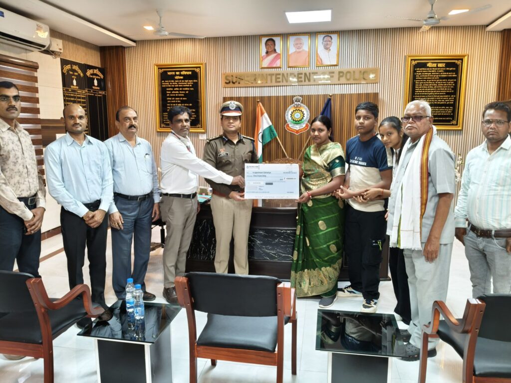 दिवगंत आरक्षक के परिजन को पुलिस अधीक्षक ने सैलरी पैकेज से 1 करोड़ का चेक किया प्रदान..