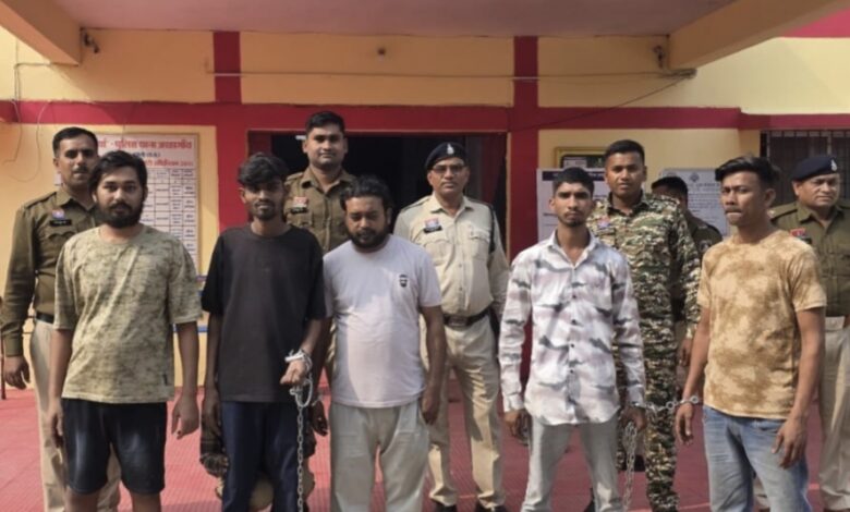 पुलिस ने बताया कि 1 मार्च को जरिये मुखबीर सूचना प्राप्त हुआ कि ग्राम जरहागांव के समीर कश्यप अवैध रूप से ब्राउन शुगर बाहर से लाकर बिक्री करने के लिए अपने अन्य दोस्तो के साथ मिलकर जरहागांव शमशान घाट के पास इकठ्ठा हो रहे है कि सूचना पर जिले की साइबर सेल एवं थाना जरहागांव पुलिस द्वारा संयुक्त टीम गठित कर विधिसम्मत कार्यवाही हेतू रवाना किया गया। सूचना तस्दीकी हेतू जरहागांव शमशान घाट मे घेराबंदी कर रेड कार्यवाही कर मुखबीर के बताये हुलिया अनुरूप 05 व्यक्तियों को हिरासत मे लेकर पुछताछ किया गया जो संदेही अपना नाम (1) समीर कश्यप पिता सुखनंदन प्रसाद उम्र 24 वर्ष निवासी ठाकुरदेव पारा जरहागांव (2) सियाराम कश्यप पिता लीलाराम उम्र 25 वर्ष निवासी ठाकुरदेव पारा जरहागांव (3) विरेन्द्र श्रीवास पिता विश्राम उम्र 34 वर्ष निवासी डीलवापारा जरहागांव (4) लोकेश उर्फ लक्की कश्यप पिता शिवकुमार उम्र 35 वर्ष निवासी महामाया पारा जरहागांव (5) रविशंकर कश्यप उर्फ बब्बा पिता भरत लाल उम्र 27 वर्ष निवासी छतौना थाना जरहागांव का रहने वाले बताये जिनका मौके मे उपस्थित गवाहों के समक्ष विधिवत तलाशी लिया गया जिनके कब्जे से 05 अलग-अलग पारदर्शी जिपर वाले पालिथिन पन्नी में ब्राउन शुगर, जुमला वजनी 53.51 ग्राम किमती करीबन 265000 रूपये मिला जिसे पृथक - पृथक पुछताछ किया गया जो समीर कश्यप के द्वारा नैनी प्रयागराज उत्तरप्रदेश से नगद एवं फोन पे डालकर ब्राउन शुगर खरीद कर लाने कहने पर अन्य आरोपीयो के लिए ब्राउन शुगर खरीद कर लाना बताये। उक्त 05 अलग-अलग पारदर्शी जिपर वाले पालिथिन पन्नी में ब्राउन शुगर, जुमला वजनी 53.51 ग्राम किमती करीबन 265000 रूपये एवं 06 नग मोबाईल सेट किमती करीबन 50000 रूपये तथा एक मो.सा. होण्डा साईन क्रमांक सीजी 28 पी 1199 नीले रंग का किमती करीबन 65000 रूपये , 01 नग इलेक्ट्रानिक तौल मशीन किमती करीबन 1000 रूपये कुल जुमला कीमती करीबन 381000 रूपये को मौके मे जप्त किया गया। मामले मे थाना जरहागांव मे अपराध क्रमांक 32/26 धारा 21 (ख) एनडीपीएस एक्ट के तहत दर्ज कर प्रकरण मे संलिप्त आरोपी (1) समीर कश्यप पिता सुखनंदन प्रसाद उम्र 24 वर्ष निवासी ठाकुरदेव पारा जरहागांव (2) सियाराम कश्यप पिता लीलाराम उम्र 25 वर्ष निवासी ठाकुरदेव पारा जरहागांव (3) विरेन्द्र श्रीवास पिता विश्राम उम्र 34 वर्ष निवासी डीलवापारा जरहागांव (4) लोकेश उर्फ लक्की कश्यप पिता शिवकुमार उम्र 35 वर्ष निवासी महामाया पारा जरहागांव (5) रविशंकर कश्यप उर्फ बब्बा पिता भरत लाल उम्र 27 वर्ष निवासी छतौना थाना जरहागांव को गिरफ्तारी पश्चात् न्यायिक रिमाण्ड पर जेल दाखिल किया गया।