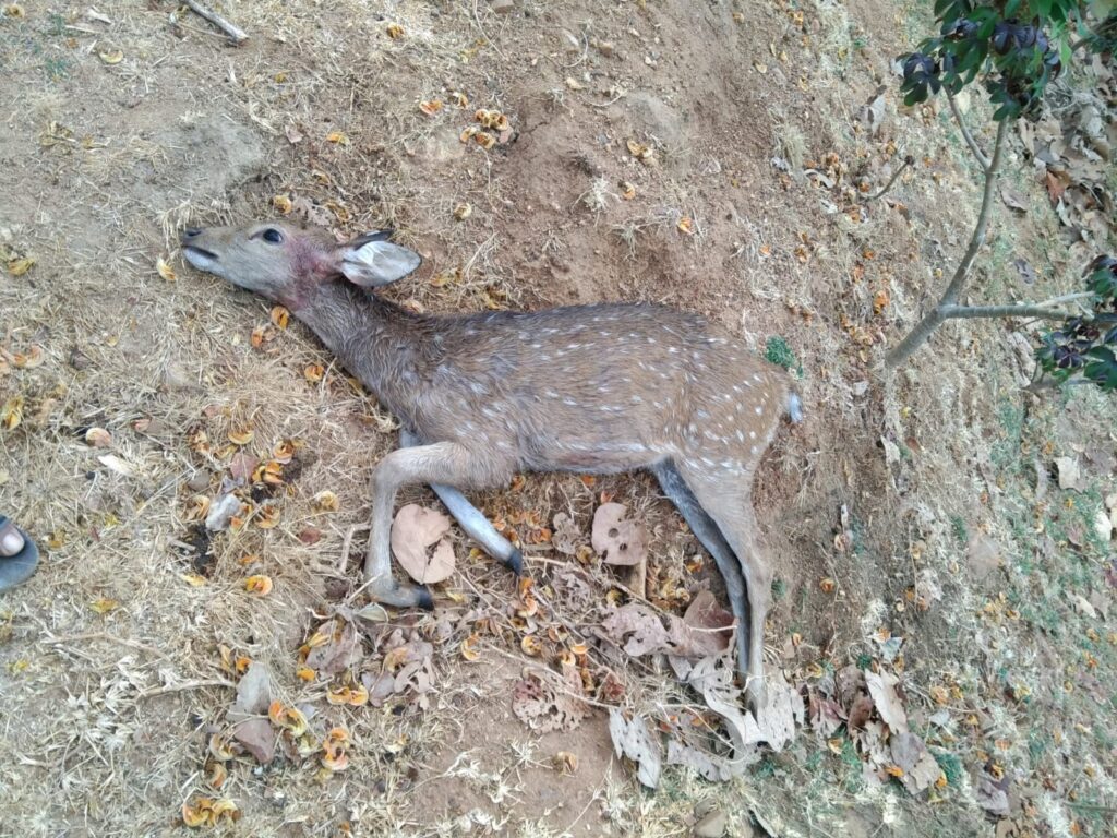 हरिपथ;लोरमी– 31 मार्च ग्राम परसवारा सामान्य वन परिक्षेत्र के बांध क्षेत्र से एक नर चीतल घायल अवस्था में गाँव के आवारा कुत्तों से ग्रामीणों ने जान बचाने का सवेदनशील मामला प्रकाश में आया है। गाँव के आवारा कुत्तों ने वन्यजीव को घायल कर दिया था,जिसे ग्रामीणों ने बांध से निकालकर सुरक्षित वनविभाग के सुपुर्द किये। वनविभाग ने घायल चीतल को प्राथमिक उपचार कराने के बाद कानन पेंडारी भेजा।