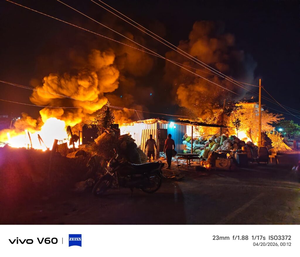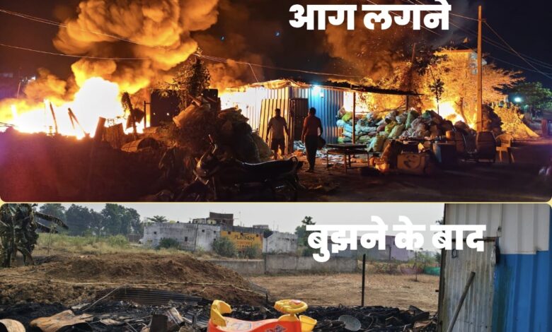 कबाड़ में भीषड आग: हेंडपम्प व मोटर पम्प की मदद से चार घण्टे में आग पर काबू..आग बुझने के बाद पहुँची मुंगेली से दमकल!
