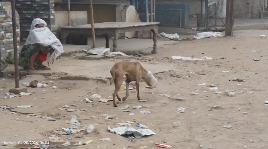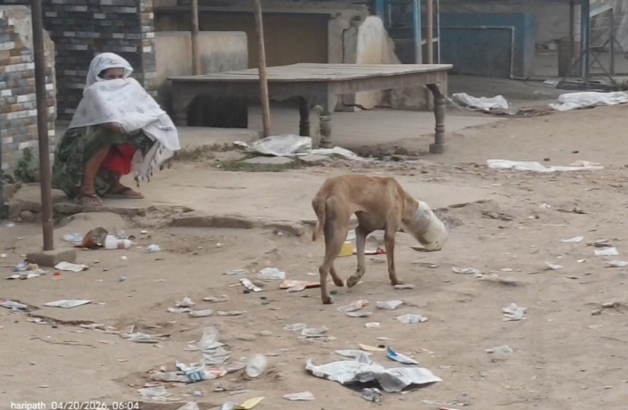 नगर में विगत पांच दिनों से एक लावारिस कुत्ते के सिर तक एक प्लास्टिक का डिब्बा सिर में घुसे हालत में बेजुबान घूम रहा है। जिसको लेकर किसी ने मदद की खबरें सामने नही आई है। डॉग के सिर में आखिर कैसे प्लास्टिक का डिब्बा घुसा है,ये जांच का विषय है,जो अब उसके जान पर बन आई है। बताया जा रहा कि विगत पांच दिनों से ऐसे ही हालत में घूम रहा जो उसके लिए नासूर बनते जा रहा है।डॉग भूखे के साथ पानी पीने में भी असहज रहा।