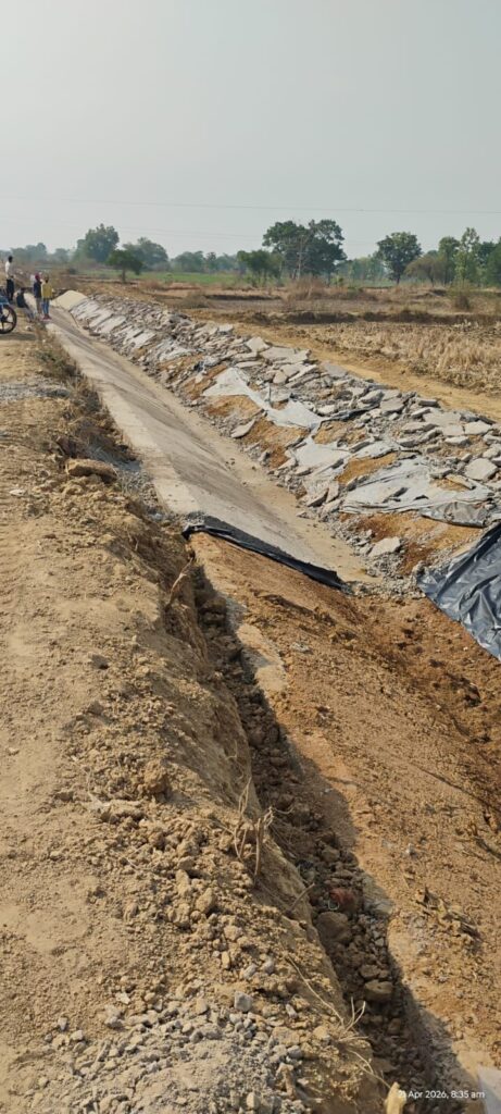 शहर से सटा हुआ 5 किमलोमीटर दूर भारत सागर जलाशय जिसके मुख्य नहर के ग्राम पेंड्री तलाब एन के नीचे स्थित नहर लाइनिंग कार्य नहरों में किसानों के लिए सुविधा विस्तार के लिए सीमेंट कंक्रीट लाइनिंग ठेकेदार द्वारा किया जा रहा है। विभाग के टाइमकीपर एवं इंजीनियर टेक्नीकल एक्सपर्ट ने कार्य को स्त्रहीतन के साथ गुणवत्तापूर्ण नही होने पर पहले विभाग ने चेतावनी दिए। कार्य मे सुधार नही होने पर आज मंगलवार को अधिकारियों के निर्देशन पर सख्त कार्यवाही करते हुए नहर लाईनिंग कार्य 98 चैन से 190 चैन पर कार्रवाई की गई 150 मी की लाइनिंग को एक्ससीवेटर की मदद नवनिमित कार्य को जड़ से उखड़वाया फेंका गया। भारतसागर जलाशय के मुख्य नहर एवं माईनर नहरों में लगभग 3 करोड़ का की लागत से 5 से 6 किलोमीटर लाइनिंग कार्य हो रहा है।