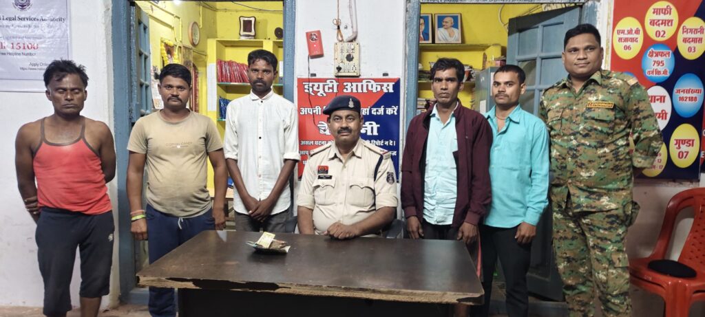 थाना प्रभारी अखिलेश वैष्णव ने बताया कि अलग-अलग टीम बनाकर कार्यवाही हेतु रवाना किया गया था |जरिये मुखबीर सूचना मिला की दो व्यक्ति अवैध शराब होंडा साइन बाइक में लेकर झीरवन की ओर जा रहे हैं पुलिस टीम द्वारा झिरवन पुल के पास घेरा बंदी कर बताये हुलिया के आधार पर साइन बाइक क़ो रोकवाया गया जो थैला में देशी पौआ शराब रखे थे जिनका नाम पता पूछने पर(1) राम खिलावन संवरा पिता तातुराम उम्र 51 साल (2) मानु मारकंडे पिता चंदु उम्र 29 साल निवासी राम्हेपुर झिरवन बताये जिनसे शराब रखने व परिवहन करने के सम्बन्ध में वैध कागजात पेश करने नोटिस दिया गया जो लिखित में नहीं होना बताने पर आरोपियों के विरुद्ध अपराध क्रमांक 554/25 धारा 34(1) आबकारी अधि. पंजीबद्ध कर शराब व बाइक क़ो जप्त कर विधिवत गिरफ्तार कर मामला जमानतीय होने से जमानत मुचलका पर रिहा किया गया | दौरान पेट्रोलिंग जरिये मुखबिर सूचना मिला की ग्राम सेमरिया व मसना में पैसा का दाव लगाकर जुआ खेल रहे हैं पुलिस टीम क़ो दोनों गांव कार्यवाही हेतु भेजा गया टीम द्वारा घेरा बंदी कर पैसा का दाव लगाकर जुआ खेलते पकड़ा गया |