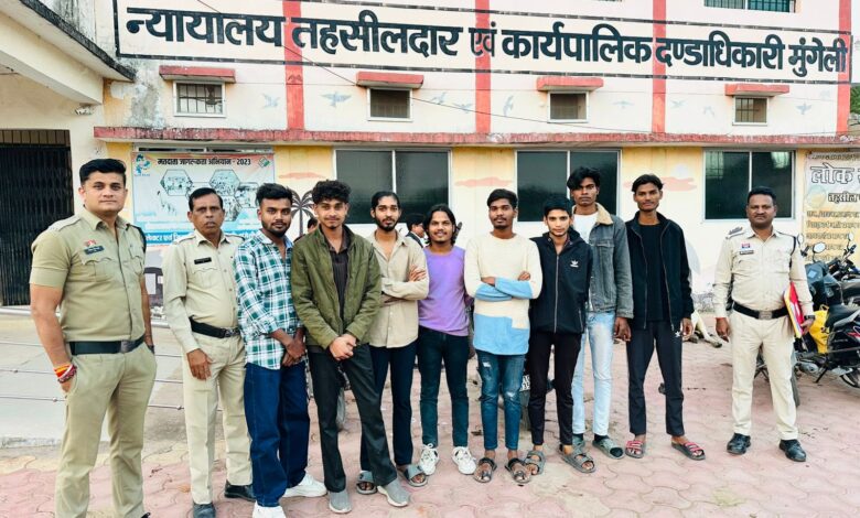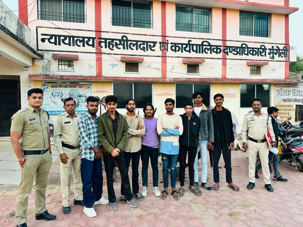 पुलिस ने बताया कि 13 नवम्बर को मुंगेली शहर मे आनंद चाट भंडार रोड आगर नदी के ऊपर बने पुल मे रोड आम जगह पर अवरूद्ध कर विनय साहू पिता मोहन निवासी रामगढ़ मुंगेली के जन्मदिन पर युवकों के द्वारा शोरगुल मचाते हुये केक काटकर आने जाने वाले लोगो को परेशान कर सार्वजनिक उपद्रव करने की सूचना पर थाना सिटी कोतवाली एवं सायबर सेल की टीम द्वारा त्वरित कार्यवाही करते हुये युवको के विरूद्ध थाना सिटी कोतवाली मुंगेली मे अपराध क्रमांक 506/25 धारा 126(2), 270, 3(5) बीएनएस कायम कर कटा केक, 04 नग मोटर सायकल को जप्त कर आरोपी 1.विनय साहू पिता मोहन उम्र 19 वर्ष निवासी रामगढ़ मुंगेली 2. रोशन पटेल पिता सूरज उम्र 18 वर्ष 06 माह निवासी अग्रवाल अस्पताल के पास मुंगेली 3. सोमेश उपाध्याय पिता दिनेश उम्र 19 वर्ष निवासी विनोबानगर मुंगेली 4.रायल खाण्डेय पिता प्रेमुदास उम्र 19 वर्ष निवासी महाराणा प्रताप वार्ड मुंगेली 5. प्रजवंल सोनकर पिता विजय उम्र 18 वर्ष 11 माह निवासी विवेकानंद वार्ड मुंगेली 6.चिरजंवी जांगडे़ पिता लक्ष्मीनारायण उम्र 18 वर्ष 07 माह निवासी मजगांवपारा 7. आकाशदीप पिता इलयाकिनदिन उम्र 18 वर्ष 02 माह निवासी मजगांवपारा 8.चन्द्र प्रकाश यादव पिता हरेन्द्र उम्र 19 वर्ष निवासी लोरमी बायपास मुंगेली के द्वारा सार्वजनिक रूप से मोटर सायकल मे केक रखकर उपद्रव करते हुये एवं आने जाने वाले लोगो को परेशान करते पाये जाने पर सभी अनावेदकों को प्रतिबंधात्मक इश्तगाशा तैयार कर धारा 170 बीएनएसएस के तहत विधिवत गिरफ्तार कर अधिक से अधिक राशि की बाउण्ड ओव्हर कार्यवाही हेतु इश्तगाशा न्यायालय पेश किया गया।
